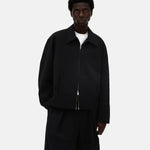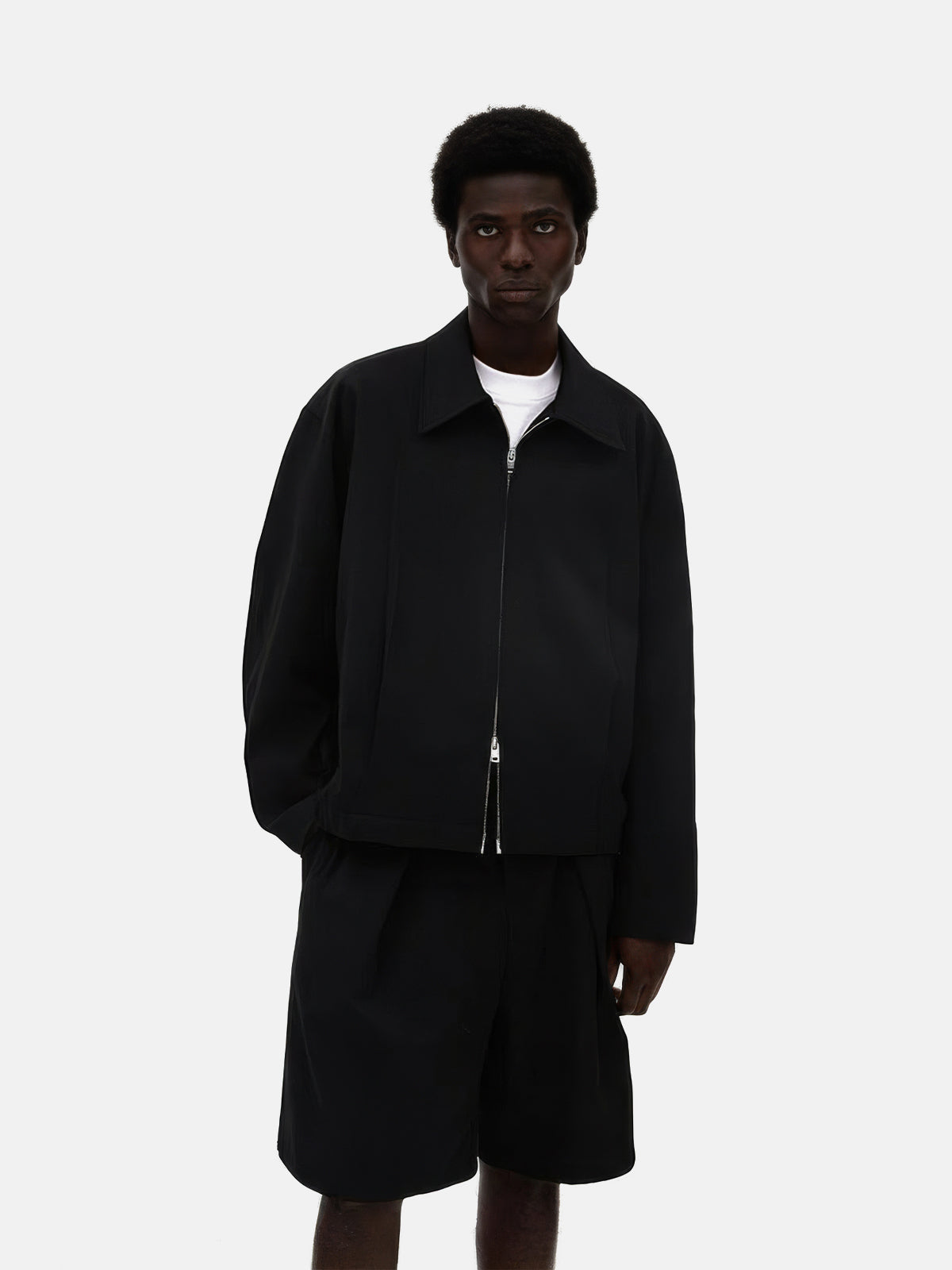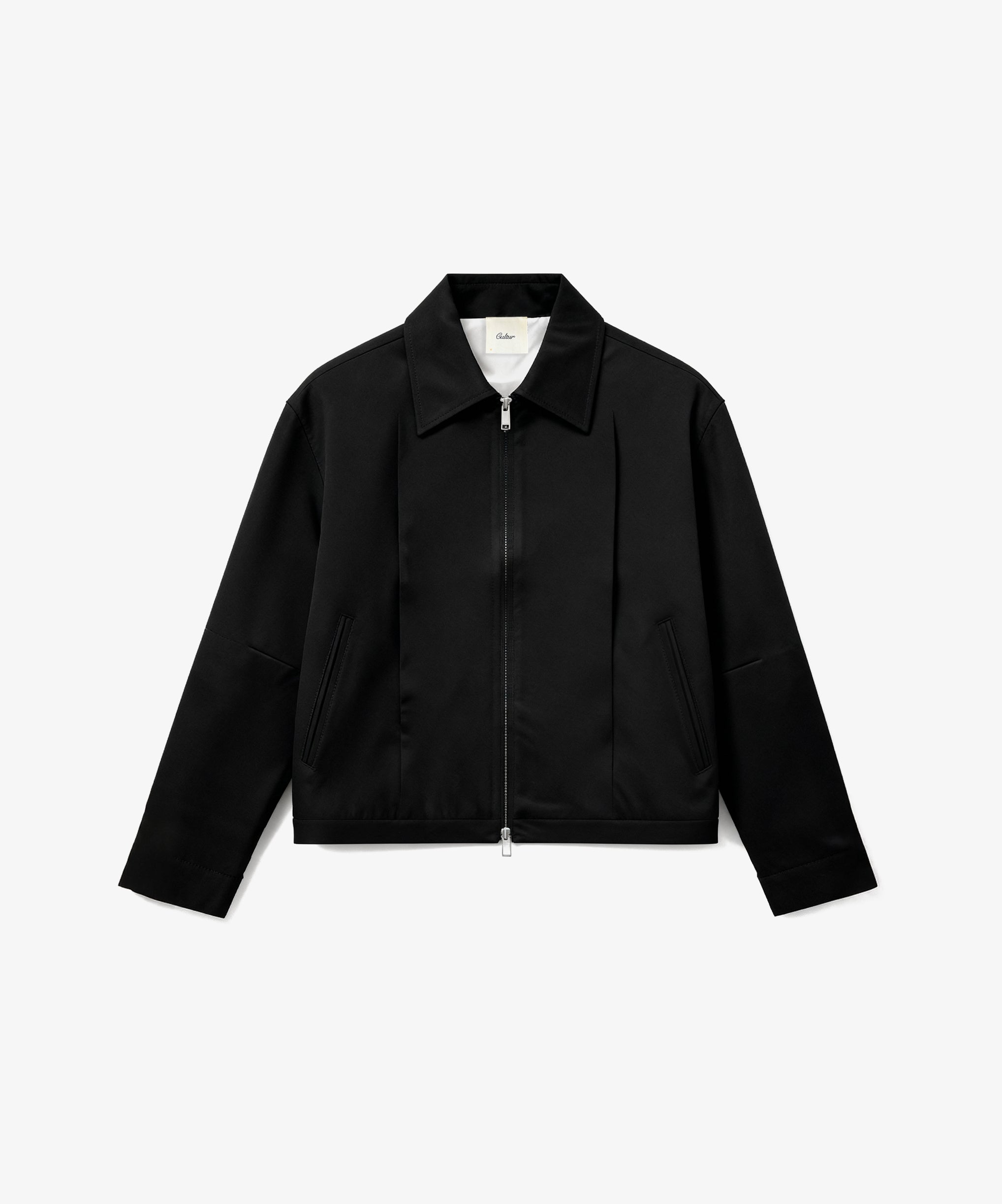 Our boxy silhouette pleated jacket in black, elegant and cozy.